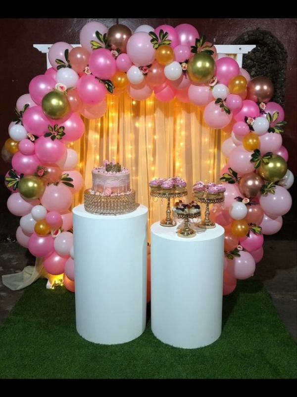 PINK AND WHITE RING BIRTHDAY SETUP